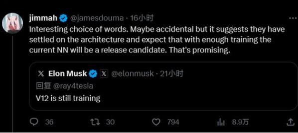 馬斯克昨日在 X 平臺回應一位用戶(hù)提出的有關(guān)特斯拉公司“何時(shí)能夠正式推出 FSD V12 版本”時(shí)表示,“FSD V12 正在訓練中,而訓練計算很快將不再是一個(gè)限制因素。”