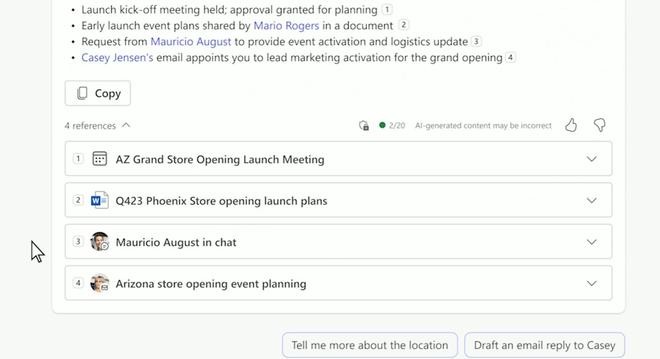 Office 辦公軟件的 AI 功能也在今天官宣上市時(shí)間。Microsoft 365 Copilot 將在今年 11 月 1 日起面向商業(yè)用戶(hù)開(kāi)放。經(jīng)過(guò)大半年的開(kāi)發(fā)后,這套體系在實(shí)現整個(gè)工作流程“AI 化”方面又取得了進(jìn)步。365 Copilot 可以調用整個(gè)辦公環(huán)境下的文件,來(lái)回應提問(wèn)并撰寫(xiě)文檔。當然,根據要求寫(xiě)郵件、總結會(huì )議紀要等基礎 AI 功能自然不在話(huà)下。