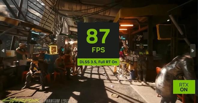 似乎是為了展示游戲性能,微軟特意拿來(lái)了即將在下周發(fā)行的《賽博朋克 2077:往日之影》來(lái)演示,在開(kāi)啟 DLSS 3.5 后這款筆記本的幀數表現能超過(guò) 80 幀。