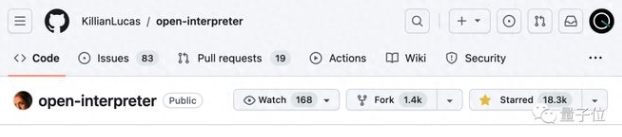 這個(gè)神器,就是開(kāi)源版代碼解釋器Open Interpreter,一經(jīng)發(fā)布就沖上過(guò) GitHub 熱搜榜第一,到現在已累積 1.8w 星。