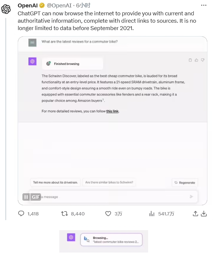 ChatGPT 再迎重大升級:必應聯(lián)網(wǎng)功能正式上線(xiàn),不再局限于舊數據 09:25:01