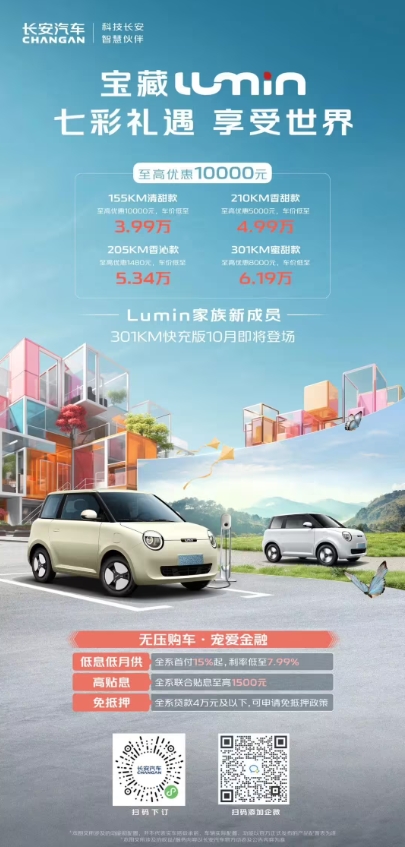 長(cháng)安 Lumin 純電微型車(chē) 301 公里快充版本月推出,其他車(chē)型最高優(yōu)惠 1 萬(wàn)元 09:46:02