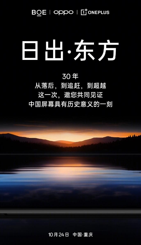 一加官方今日宣布攜手京東方,“共同打造手機屏幕的新巔峰”。雙方將于 10 月 24 日在重慶舉行發(fā)布會(huì ),預計將帶來(lái)新機的最新消息。