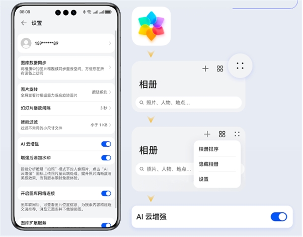 升級后,大家就能在圖庫的設置中找到“AI云增強功能”,打開(kāi)即可。