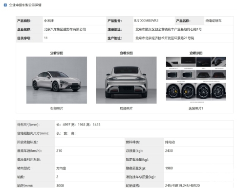 剛剛,工信部網(wǎng)站公布了小米汽車(chē)的企業(yè)申報車(chē)型公示,詳情頁(yè)面顯示小米汽車(chē)的首款車(chē)型型號為SU7,品牌也以小米汽車(chē)推出,并沒(méi)有像之前傳聞的那樣以“澎湃汽車(chē)”推出。