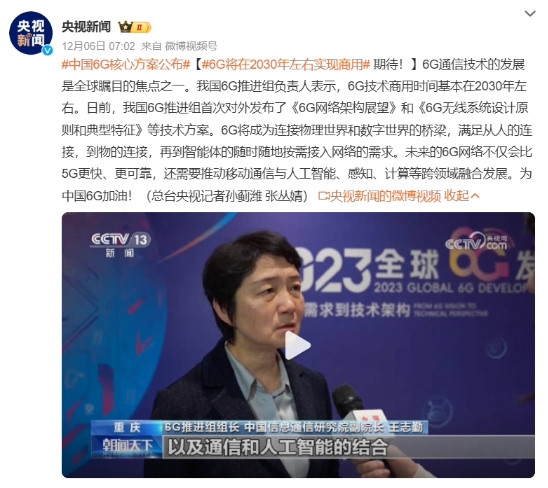可以看到,本次會(huì )議再次提到加快 6G 技術(shù)研發(fā)。據央視新聞此前報道,我國 6G 推進(jìn)組組長(cháng)、中國信息通信研究院副院長(cháng)王志勤透露,6G 技術(shù)的商用時(shí)間基本上是在 2030 年左右,它的標準化制定時(shí)間會(huì )在 2025 年。