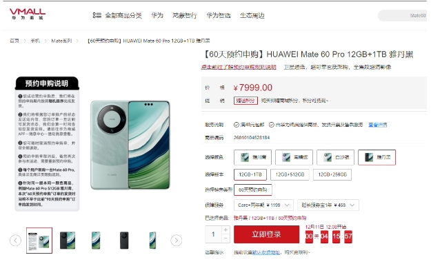 華為 Mate 60 Pro 今日開(kāi)啟“60 天預約申購”:訂單按隨機順序發(fā)貨 10:05:40