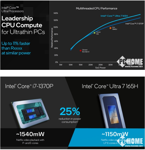 本次發(fā)布的酷睿Ultra系列處理器共有8款,包括4款U系列和4款H系列,最高16核心22線(xiàn)程的酷睿Ultra 7 165H的最大功耗可以達到64瓦(PL1),明年還會(huì )有最高運行頻率高達5.1GHz的Ultra 9 185H推出,最大功耗來(lái)到115瓦。