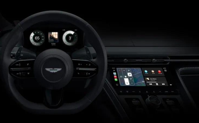 例如,支持新版 CarPlay 的保時(shí)捷車(chē)型采用了“三炮筒”的儀表盤(pán)界面,其背景圖模擬了保時(shí)捷獨特的“Pepita”材質(zhì)紋理。阿斯頓?馬丁車(chē)型的 CarPlay 設計略有不同,則是通過(guò)該品牌專(zhuān)屬的綠色勾勒出儀表盤(pán)的輪廓。