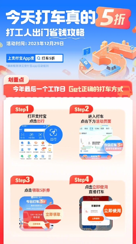 2023 最后一個(gè)工作日,支付寶推出“打車(chē) 5 折”活動(dòng) 09:45:03