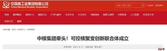 中核集團牽頭,我國可控核聚變創(chuàng )新聯(lián)合體成立