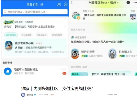 消息稱(chēng)支付寶再戰社交,內測“興趣社區”功能 09:20:35