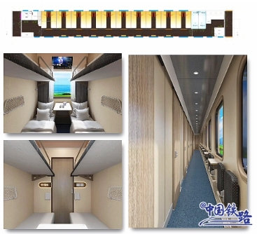 什邡居舍?高級硬臥共有 10 個(gè) 4 人包間,內設茶桌、收納倉電視、呼叫器、充電插座。