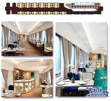 翠意什邡?美食餐車(chē)車(chē)廂配備電氣化廚房,中部設置用餐區域。