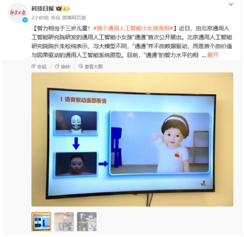 北京通用人工智能研究院近日研發(fā)出了一款名為“通通”的通用人工智能小女孩。這款人工智能系統與之前的模型有所不同,它并不是由傳統的數據驅動(dòng),而是采用了價(jià)值與因果驅動(dòng)的方法。據官方介紹,“通通”的智力水平相當于三歲兒童的智力水平,在某些特殊任務(wù)領(lǐng)域甚至超過(guò)了成人。