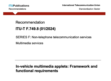 國際電信聯(lián)盟標準部門(mén)(ITU-T)正式發(fā)布了由騰訊主導制定的《F.749.8 In-vehicle multimedia applets: Framework and functional requirements》(車(chē)載多媒體小程序框架和技術(shù)需求)國際標準。