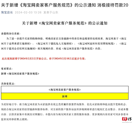 “淘寶擬規定客服消極回復 1 單罰 20 元”微博話(huà)題引熱議,官方回應“正處于意見(jiàn)征集期” 09:24:10