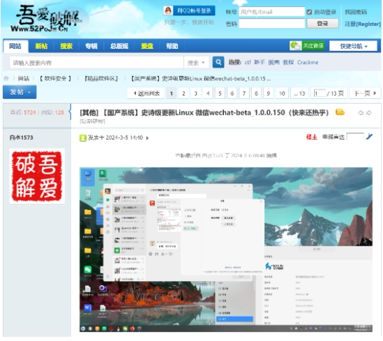 7、部分 Linux 發(fā)行版登錄失敗(疑是白名單,可以用麒麟商店舊微信登錄再安裝新微信解決)