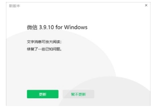 微信 Windows 版日前獲推 3.9.10 版本更新,帶來(lái)了“文字消息可放大閱讀”功能,并修復了一些已知問(wèn)題。