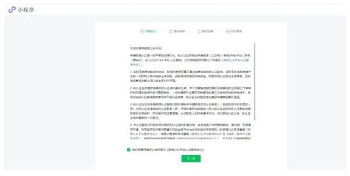 3、認證協(xié)議說(shuō)明頁(yè)面,繼續點(diǎn)擊“下一步”綠色按鈕。