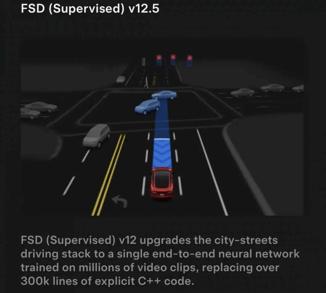 與12.4版本相比,FSD v12.5參數提高了5倍之多。新版本已經(jīng)將高速v11技術(shù)棧切為v12棧,也就是高速、城區智駕全面切換為端到端方案。