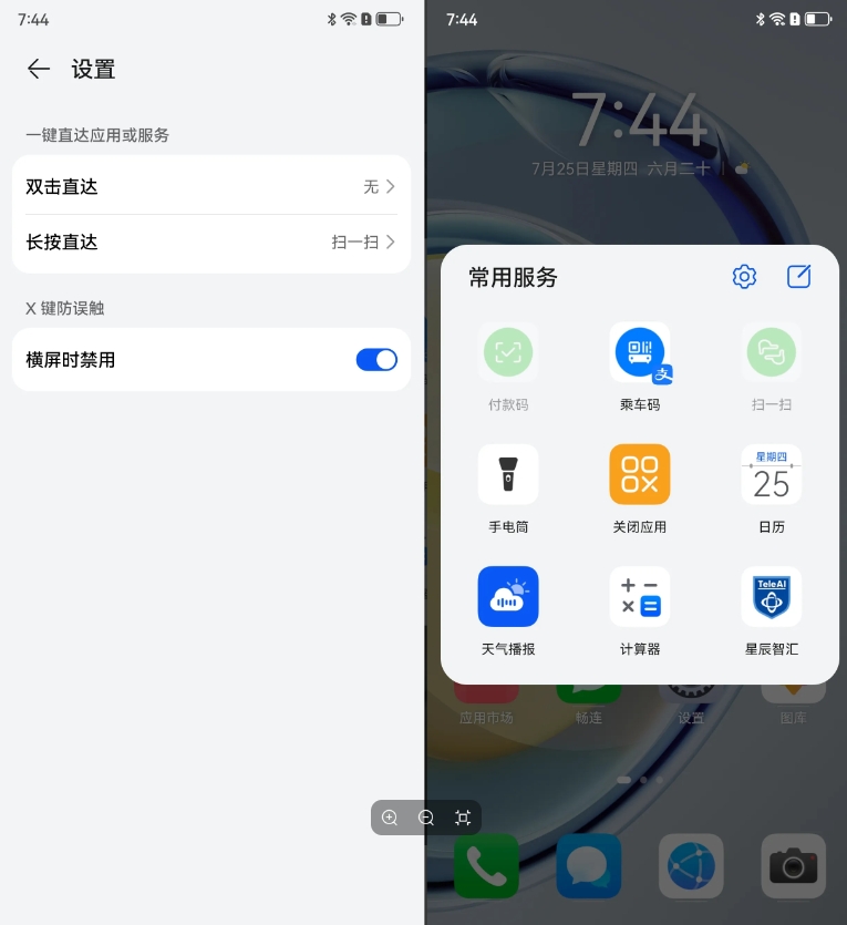 差點(diǎn)忘了,麥芒30還有一個(gè)特別有意思的設計,那就是在機身中框的左上角有一顆獨立物理按鍵,官方將其稱(chēng)為X鍵。單擊它時(shí)就能直接呼出常用APP九宮格頁(yè)面,你可以提前將自己常用的APP「放入」其中,例如像什么付款碼、手電筒、指定聯(lián)系人等等等等。