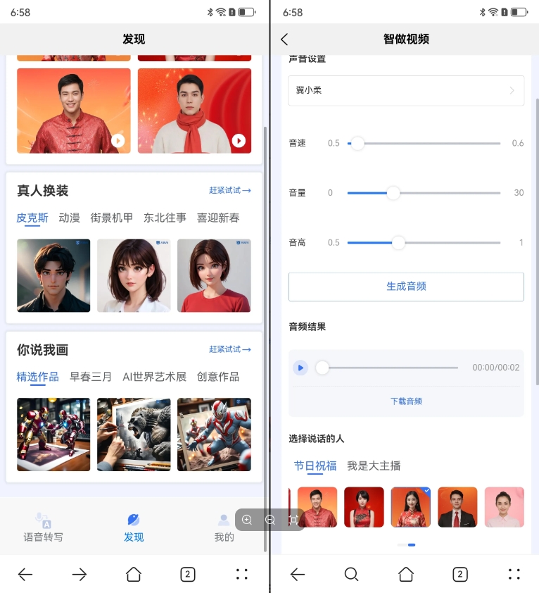 小雷簡(jiǎn)單體驗了一下視頻生成功能,你可以根據自己的需求設置虛擬主播的播報內容,也可以選擇不同的語(yǔ)速、音色、形象等。雖說(shuō)整體的效果還是有一些生硬,但對于很多老年人來(lái)說(shuō),如此簡(jiǎn)單的操作已經(jīng)能夠滿(mǎn)足他們的需求。