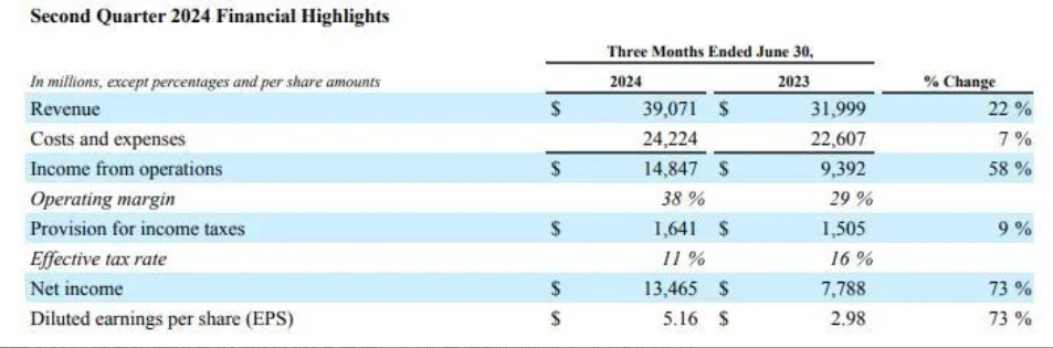 運營(yíng)利潤:同比增長(cháng)58%至148.5億美元,高于市場(chǎng)預期的145.9億美元。運營(yíng)利潤率從上年同期的29%增至38%。