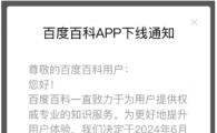 百度百科 App 近日彈出窗口通知,2024 年 6 月 30 日將關(guān)閉百度百科 App 服務(wù),將在百度 App 中的百度百科小程序繼續提供服